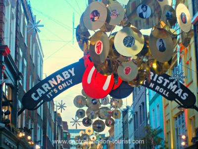 The last time I went to Carnaby Street was at Christmas and the most reference I saw to its famous past were the decorations above the street.